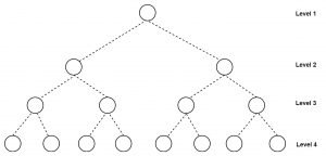 2. The figure represents a binary tree with 4 levels. At the top, root task is divided into two sub-tasks further these level 2 tasks are assigned to four processes. At the bottom level, tasks are mapped with processes. The mapping used at this level is one to one mapping.