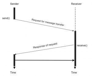 2) First sender process sends the request to a receiver for communication then receiver gives reply to the sender process. When sender process gets the reply, it immediately starts the message transfer. Since we are not using any buffering mechanism in message transfer, therefore, this process is known as non-buffered communication.