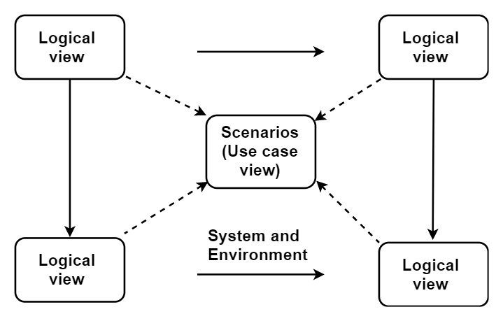 - Scenarios: Scenario at the centre represents fifth view which refers as use case view.