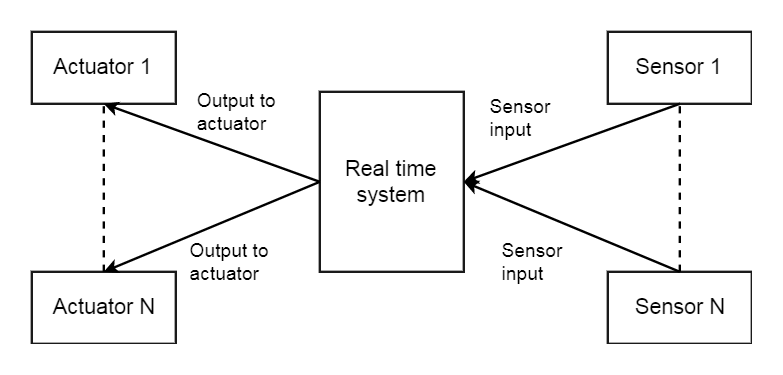 - Real time system contains special purpose device drivers which can be connected to sensors and actuators.