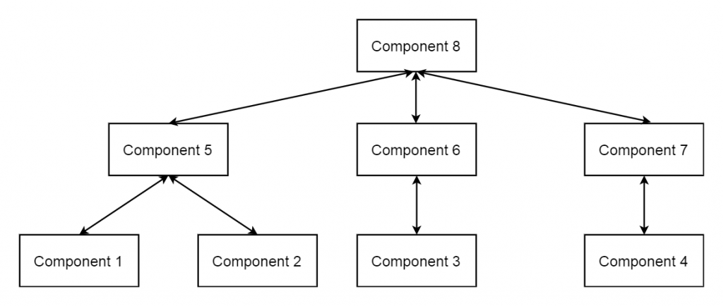 - Arrows pointing up describes integration path. Testing starts from component 1 and goes up covering all components till 8th